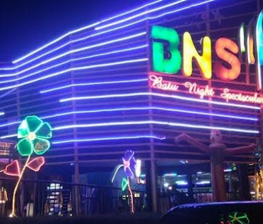 Here are facilities in BNS: Night Market, Food couth, Spectacular Show ( Laser Show, Dancing Fountain, Multimedia Show with 50 meters screen ), stage, lampion garden, 4D theater, Ghost House, Ghost Bust, Glass House, Family Karaoke, Games Room, Go Kart, Battle Area, Drag Race Curcuit, Road race and Slalom with audience tribune, Cafe Hantu Elite, Magic Square Resto, Restaurant, Carnivals and many more.